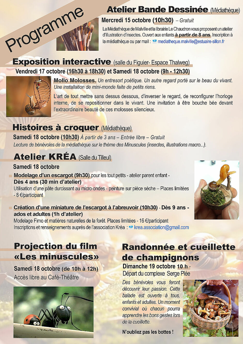 La Médiathèque de Malville et la librairie Le Chaudron vous proposent un atelier d’illustration d’insectes. Ouvert aux enfants à partir de 8 ans. Inscription à la médiathèque ou par mail : mediatheque.malville@estuaire-sillon.fr